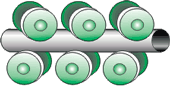 - поступление штрипса в спиральный накопитель (8) и его последующая формовка в трубную заготовку при помощи валков, являющихся частью трубоэлектросварочного прокатного стана.