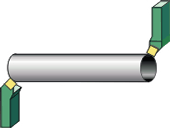 После локальной термической обработки происходит охлаждение труб на воздухе (в последствии эмульсией) (12) и калибровка трубы по диаметру в линии трубоэлектросварочного стана (13).